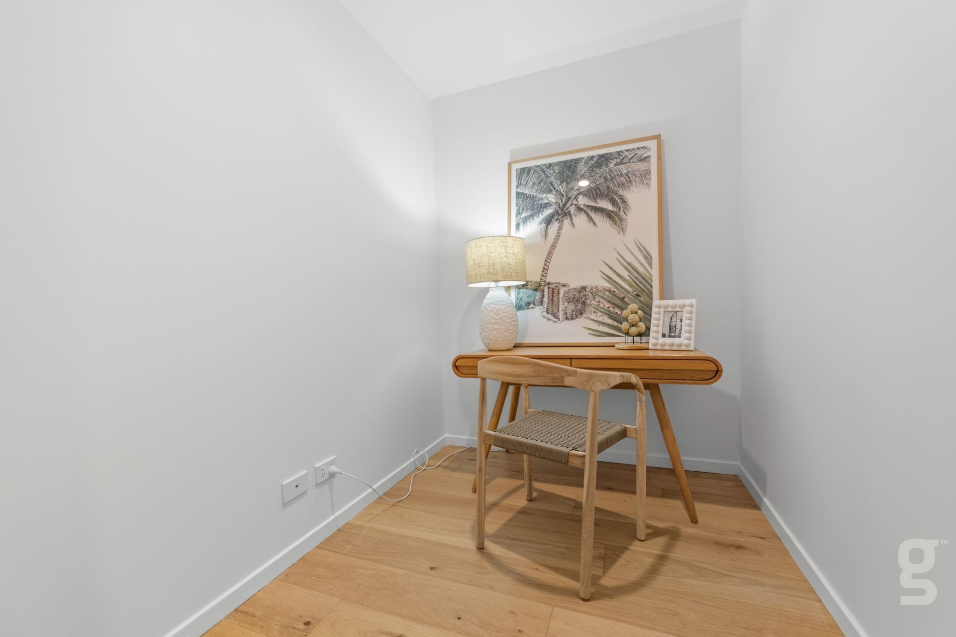 Both bedrooms are generously proportioned, featuring abundant built-in wardrobe space and custom joinery. A standout feature of this residence is the multi-purpose room, offering flexibility as a home office, media room, or additional bedroom. Premium acoustic glazing and block-out curtains in all windows ensure quiet, restful living, while split-system air conditioning throughout guarantees comfort.
