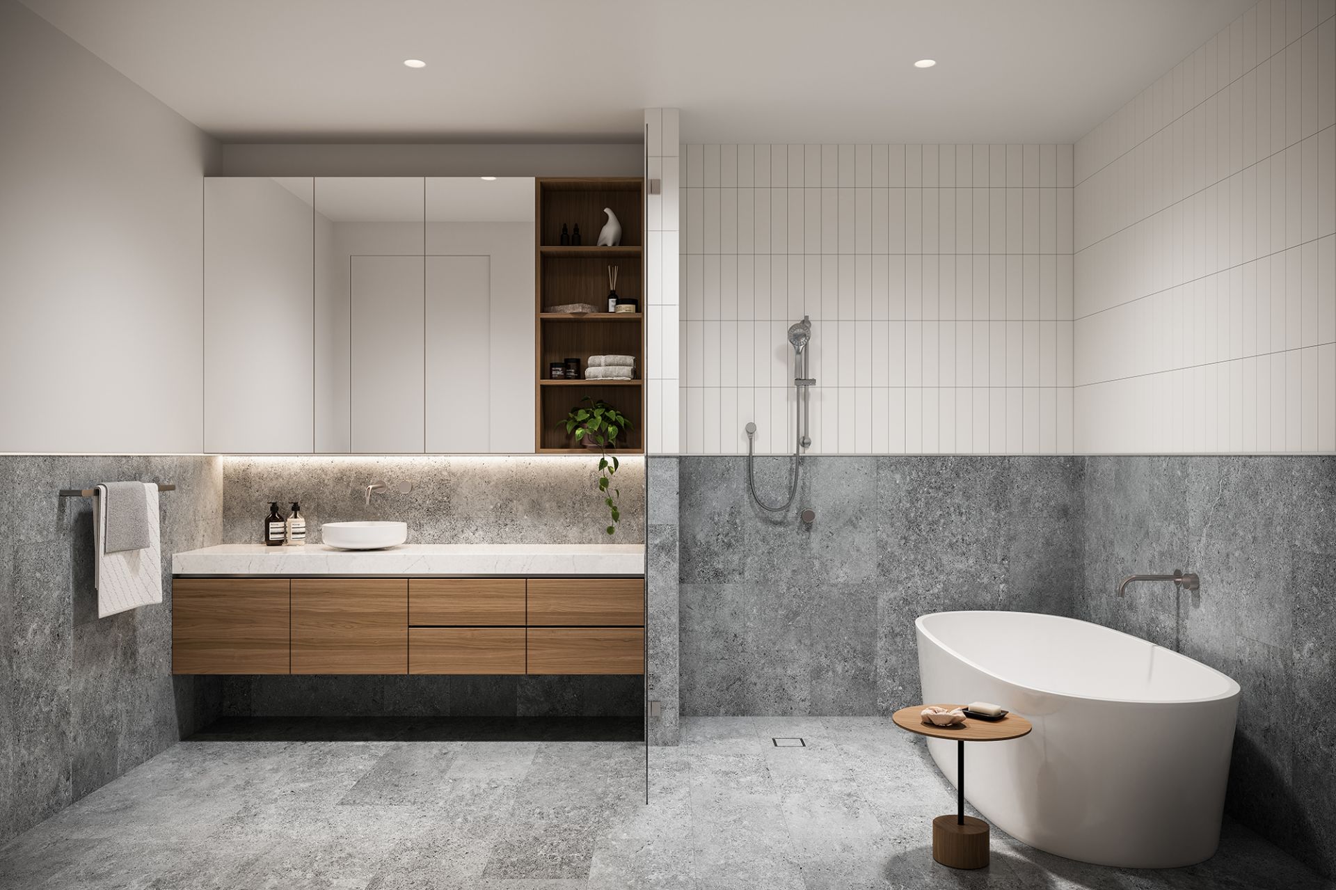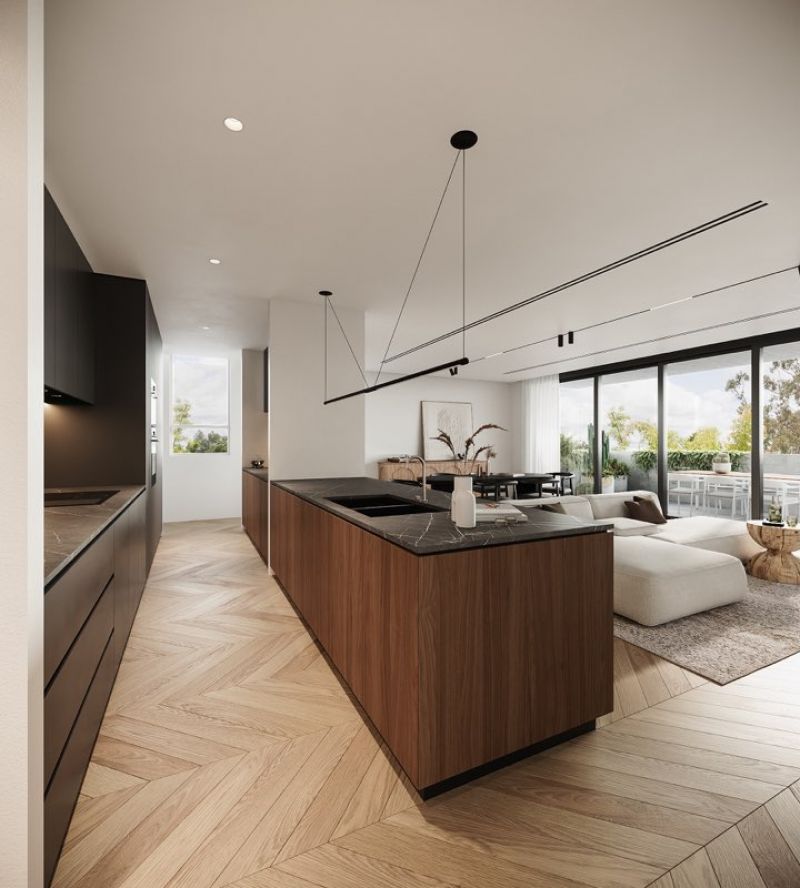 Crafted by award-winning KP Architects, Monument’s bold Brutalist-inspired design is softened by warm textures and refined finishes. The spacious interiors are elevated by high ceilings, open-plan living and dining zones, and generous outdoor spaces—perfect for entertaining or relaxing in style.