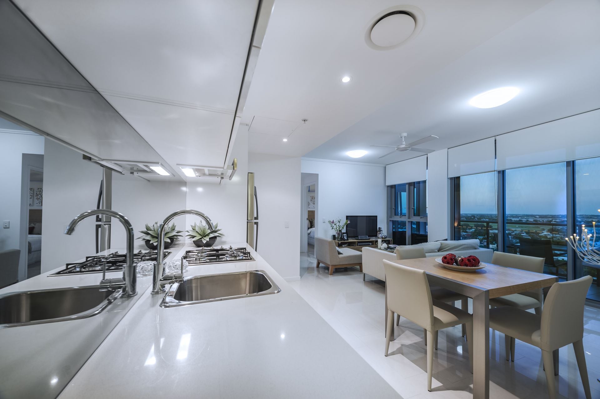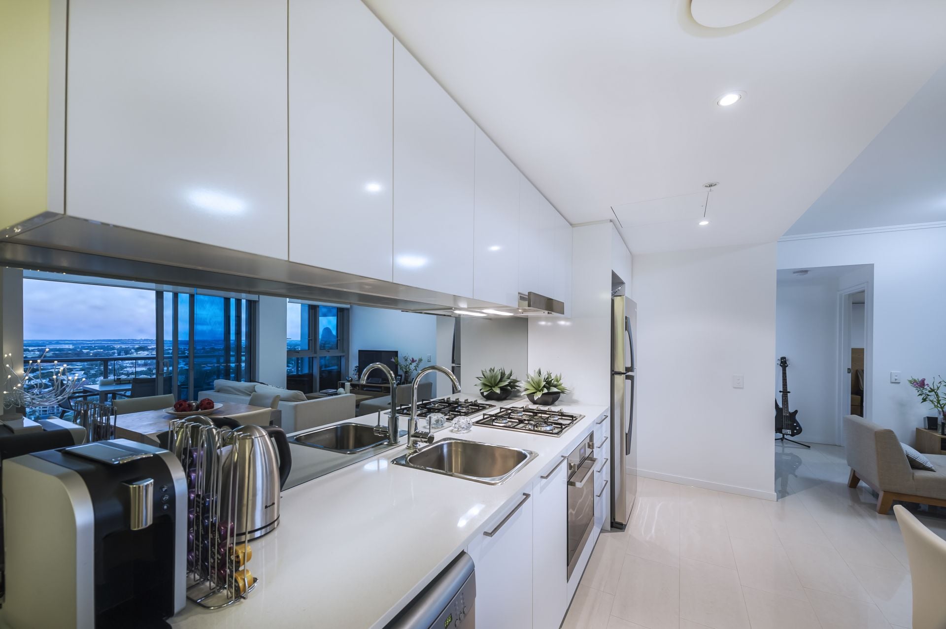 It presents as new, modern level apartment that enjoys a private position in the prestigious Harbour One Tower, with a birdseye panorama views of Hamilton, Ascot and as far as Moreton Bay through the double glazed floor to ceiling windows.