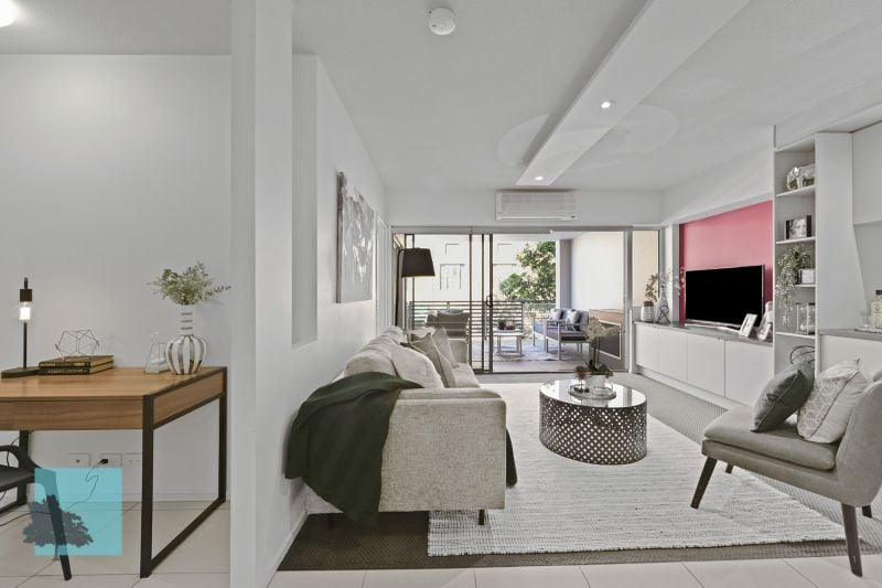 A rare opportunity to purchase a beautiful two bedroom, two bathroom and one car park apartment inside Teneriffe’s prized Fusion Apartments has arrived. Located on the highly desirable Arthur Street, directly across the road from the iconic Woolstore Teneriffe Apartments, this east-facing 115sqm home boasts a range of quality amenities. On a daily basis you will enjoy tiled living areas, a spacious balcony, air-conditioning, ceiling fans, a kitchen with gas cooking appliances and island bench tops, a large balcony and a master bedroom which fits a king size bed, two bedside tables and also has a walk-in ensuite. During moments of leisure, you’ll also be able to enjoy Brisbane’s year-round beautiful weather at the well-sized residential swimming pool surrounded by a host of sun beds.