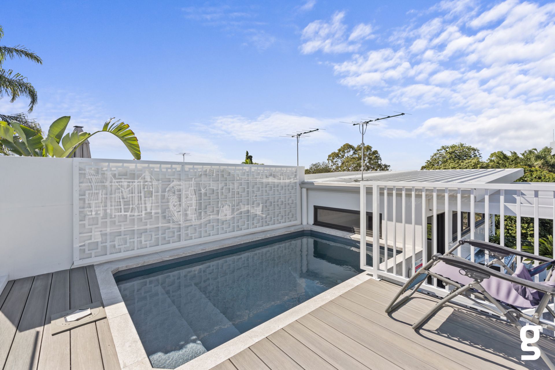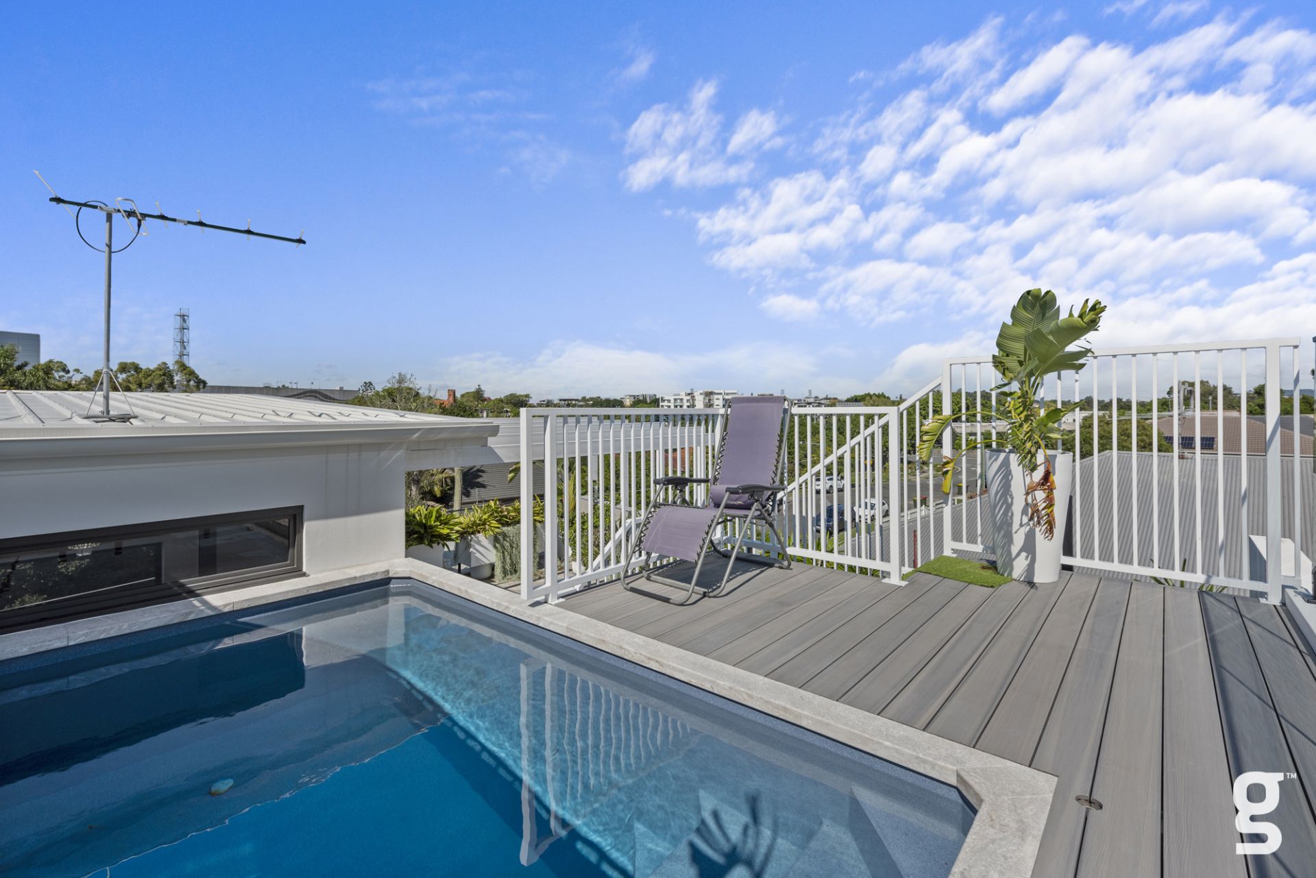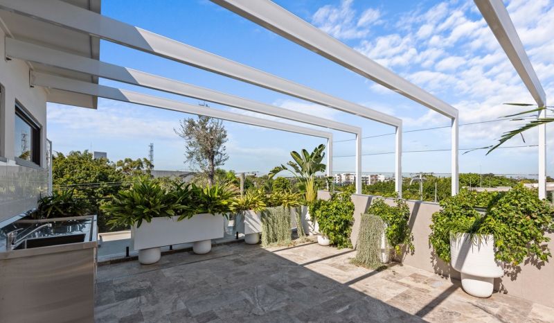 The crown jewel of this home is the expansive rooftop terrace. Designed for memorable entertaining or tranquil relaxation, it offers resort-style luxury with a private plunge pool and panoramic views of the surrounding greenery.