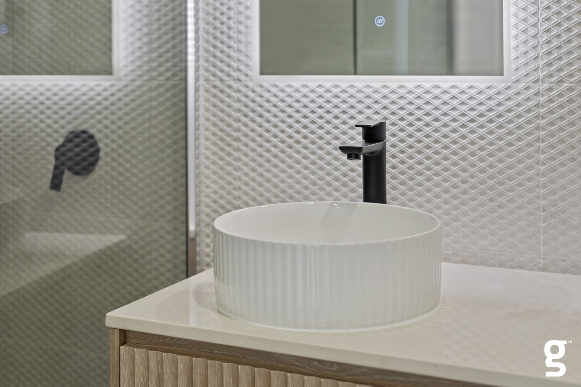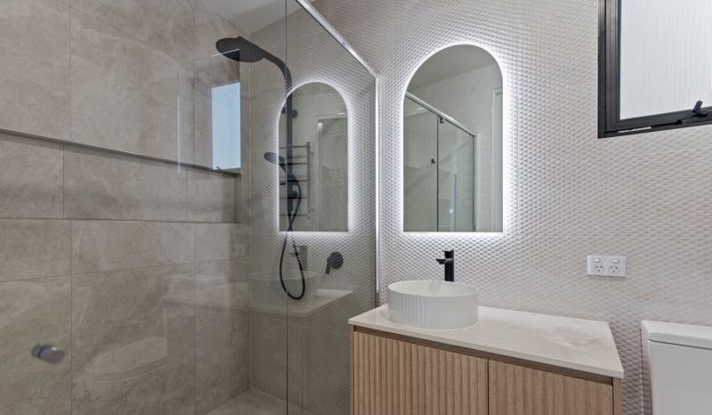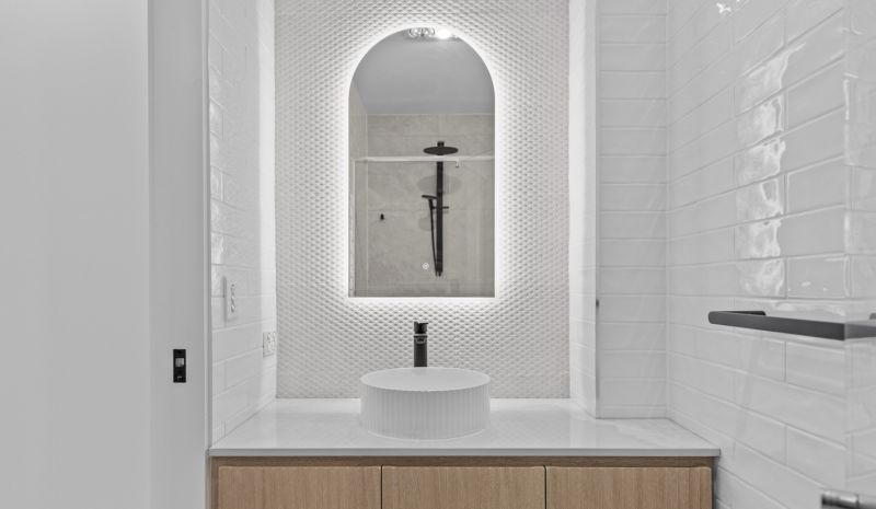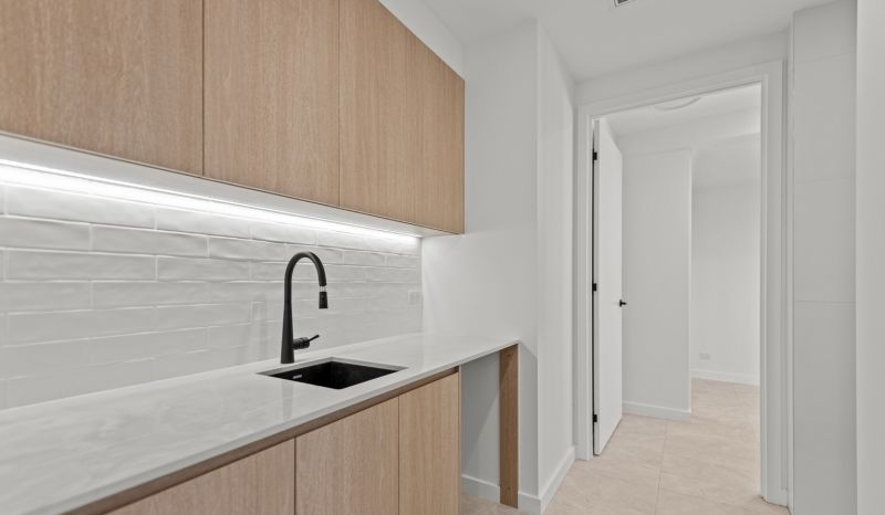 With three spacious bedrooms, two elegant bathrooms, an extra powder room, and a secure single garage, this layout is both practical and sophisticated—ideal for couples, families, and executives alike. The bathrooms showcase luxury at its finest, with lavish stone-top vanities, floor-to-ceiling tiles, and backlit LED mirrors, including a private ensuite in the master suite.