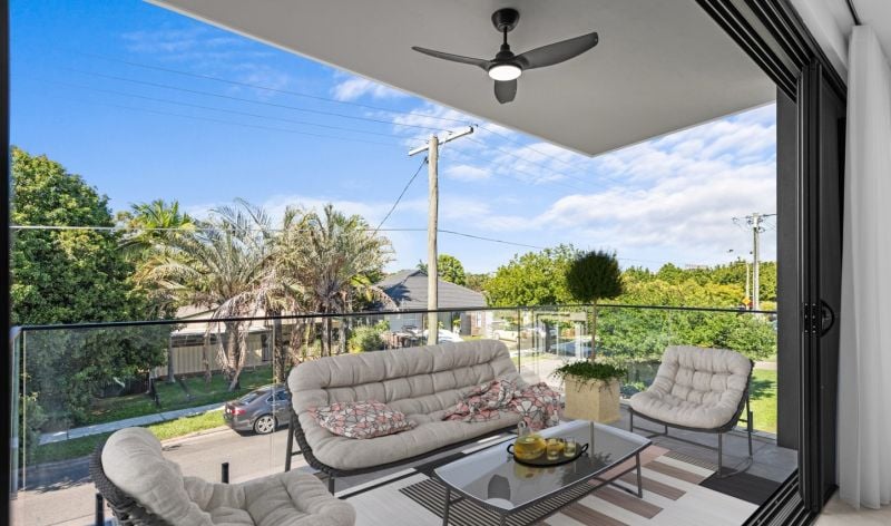 Spacious, light-filled living and dining areas leading to a balcony