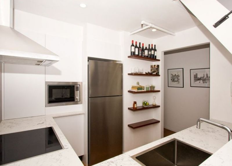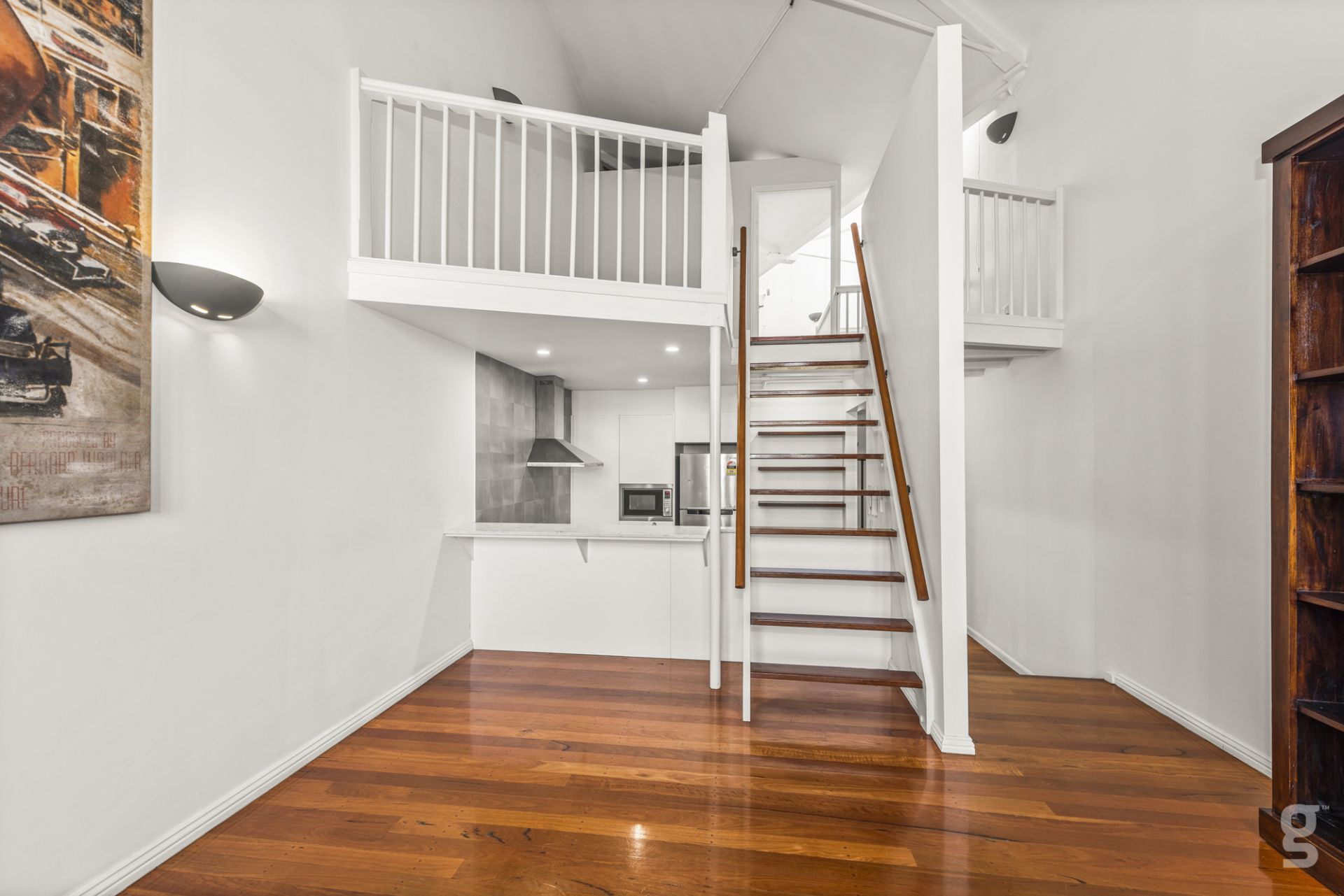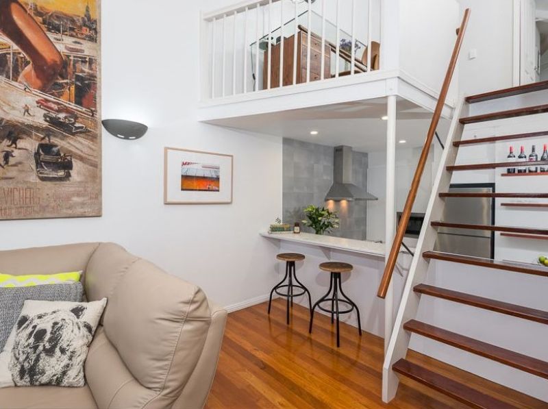 The layout offers two bedrooms and two bathrooms including a master loft with a built-in robe, an ensuite and room for a study or reading nook. The main-floor bedroom also has a built-in robe plus there’s a central bathroom and space for a compact laundry.