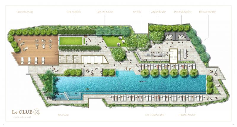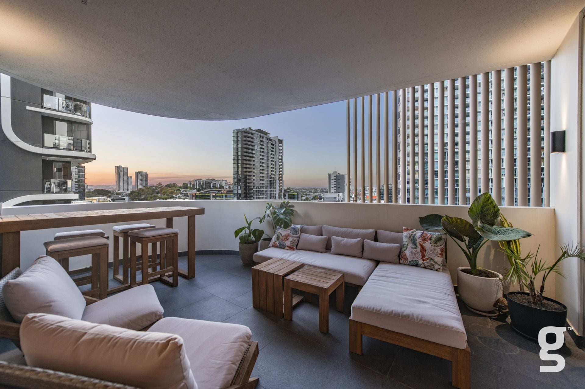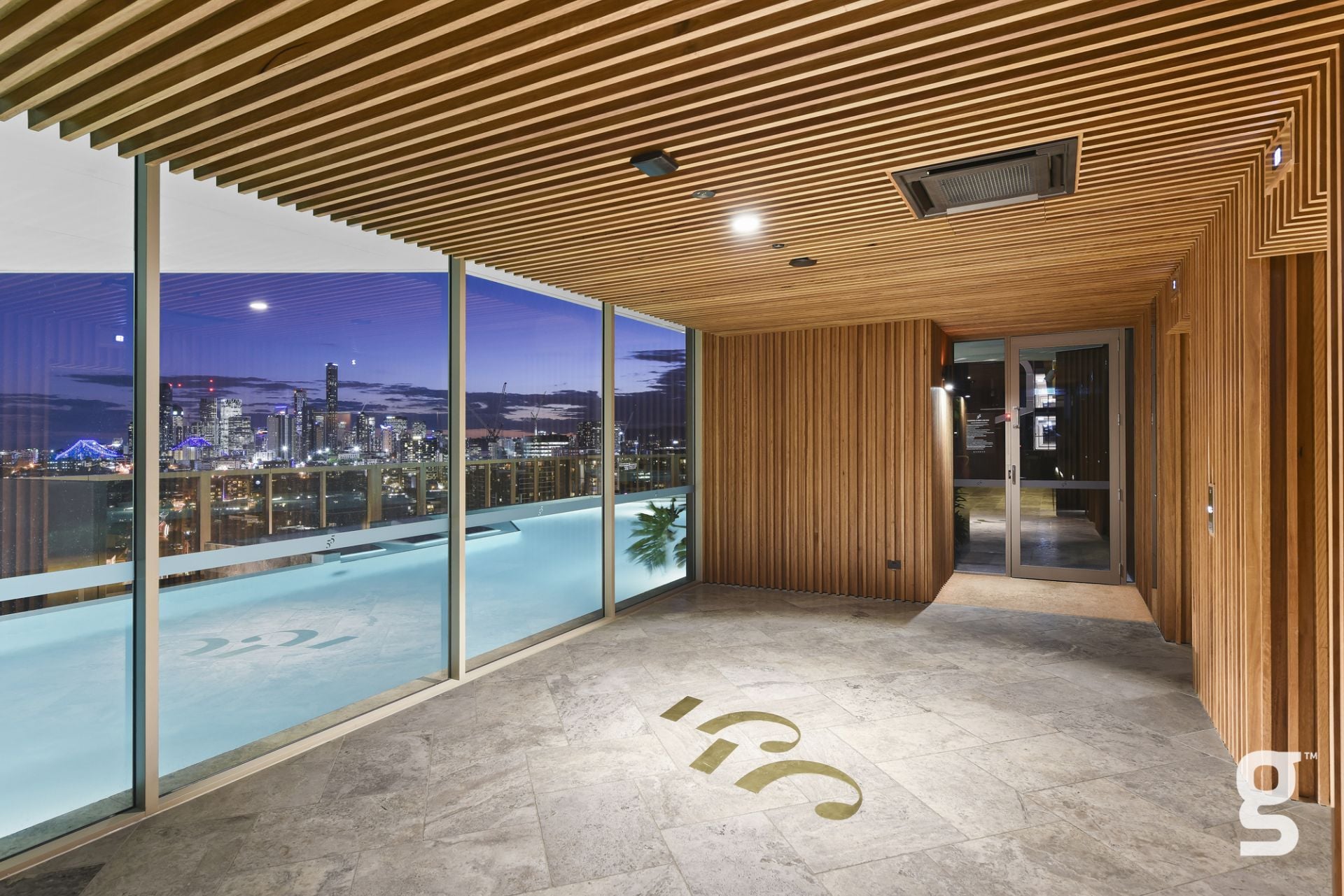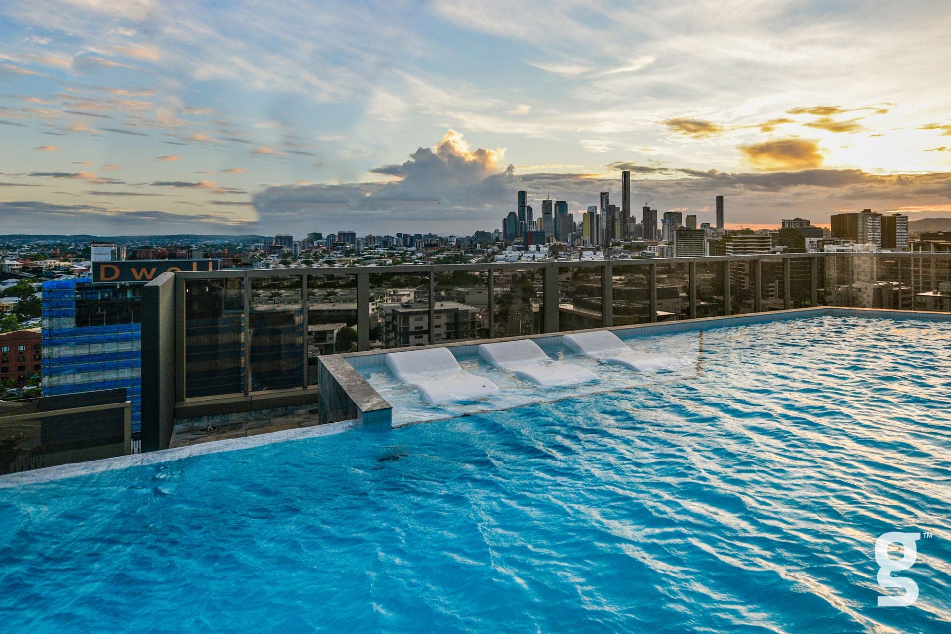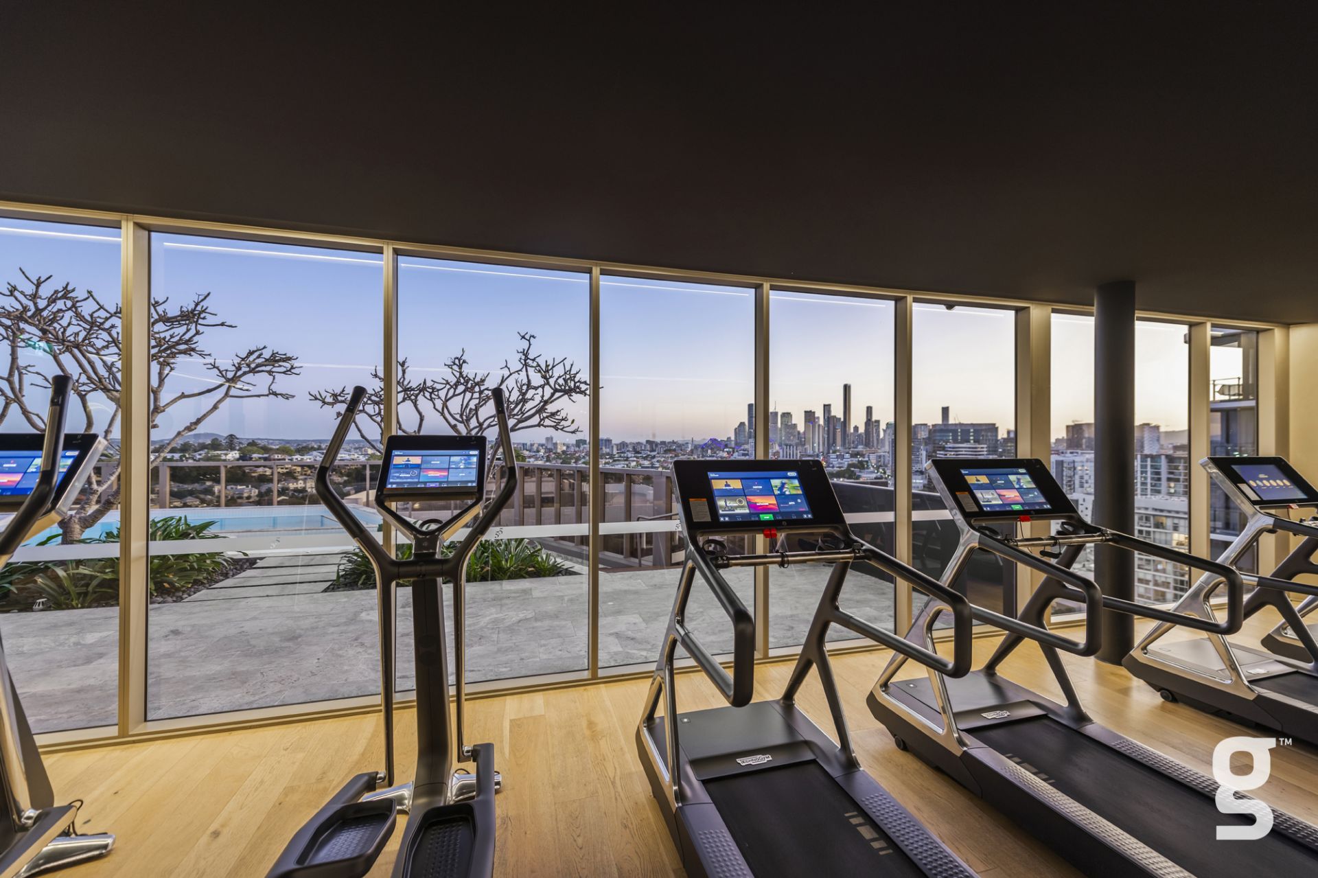 Lucent Gasworks is a 17-storey residential tower designed to opitomize Brisbane’s health and wellness, contemporary lifestyle. This architectural landmark offers an array of luxury amenities and exclusive services, including a private 1600sqm rooftop oasis. The exclusive rooftop amenities include a 55m infinity pool with underwater speakers, a heated sunset spa, and a waterfall deck. For relaxation and wellness, there is a sauna with floor-to-ceiling glazing and panoramic city views. The private dining room is available for event bookings, and the entertainment options include a golf simulator with over 170 virtual courses. The fitness center is equipped with state-of-the-art Technogym equipment, including Pilates reformers, a skillmill, and a yoga deck. The rooftop retreat offers an entertaining area complete with a Teppanyaki Bar and multiple relaxation areas.