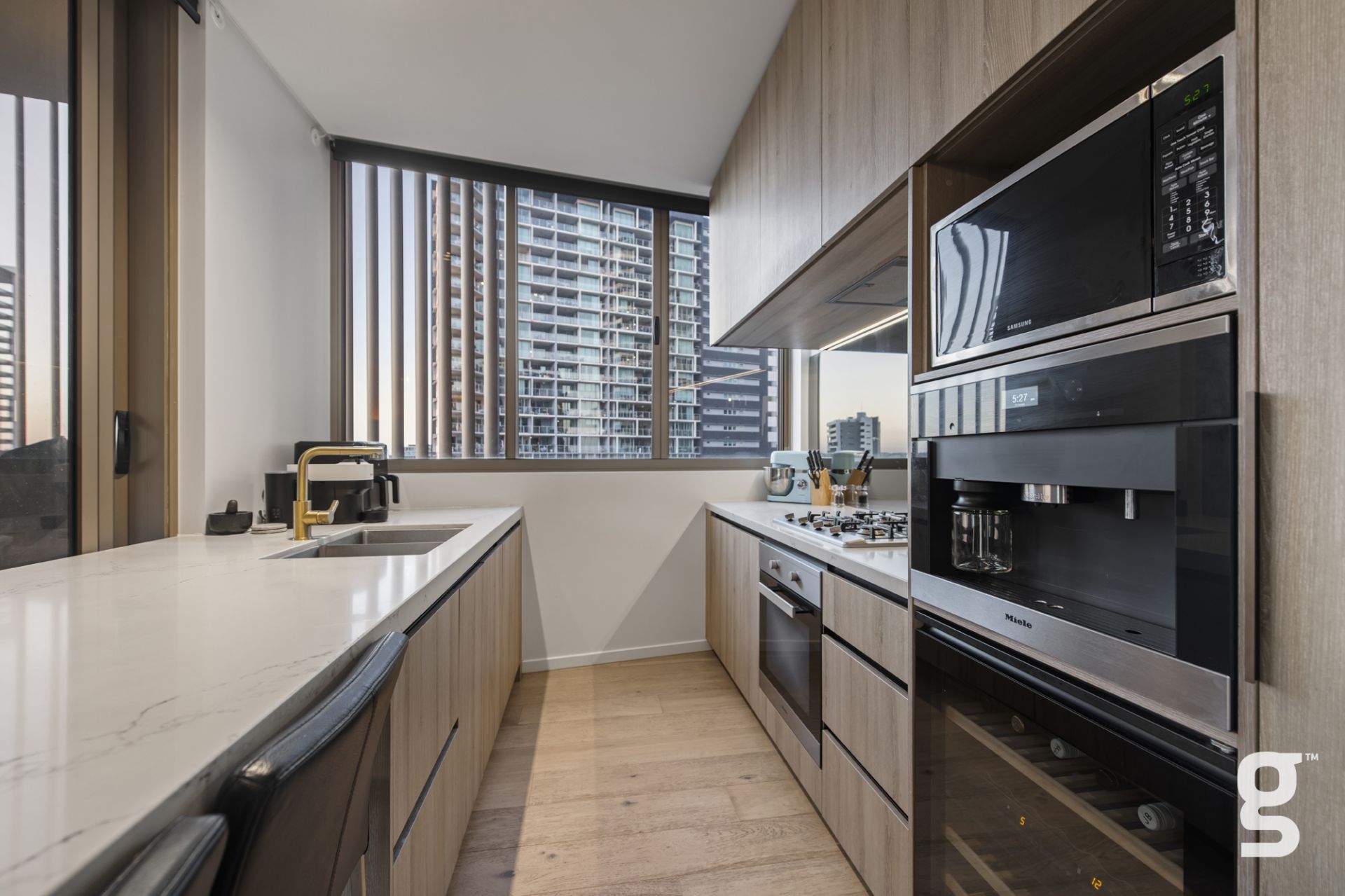 Welcome to your dream home at Lucent Building, a masterpiece by the renowned developer Cavcorp. Located on the 9th floor, this stunning corner unit boasts 2 bedrooms, 2 bathrooms, and 1 car park, offering a north-west facing aspect that fills the space with natural light. This exquisite residence combines high-end finishes, Miele appliances, and an abundance of natural light to create an unparalleled living experience.
